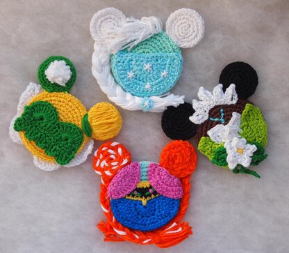 The princess ornaments that you can create with these patterns will be about 4,7 inches (9 cm) high and 3,7 inches (8 cm) wide.