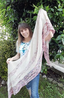 MaterialsGarnstudio Drops Alpaca (50 g/1.8 oz, 167 m/183 yds, 100% Alpaca): 320 mt/352 yds of sport yarn, col. 0100 Natural (CP). Piratenwolle (100 g/3.60 oz, 400 m/440 yds, 75% Merino Wool, 25% Polyammide): 390 mt/427 yds of fingering yarn, col. 283 (CC). Needles: 4 mm US 6 circular needle at least 80 cm 32” or longer. Adjust needle size if necessary to obtain the correct gauge. Other: Stitch Markers, Tapestry needle, Scissors, Pins for blocking the shawl.