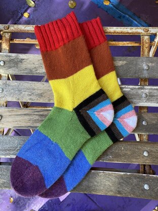 When my teenager asked me to knit some pride-flag socks, I knew I wanted to include the Progress Pride triangle but didn’t see any sock patterns that included it - so I created it.