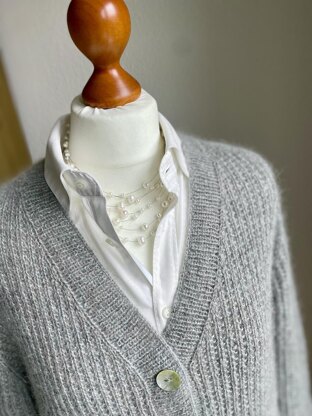 Diese Anleitung „Der Luxus-Cardigan“ bildet einen Auszug aus dem #projectcaya ab und erklärt die Ausführung eines sehr eleganten grauen Cardigan im falschen Patent.