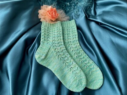 These socks are perfect for a prom, or any other special occasion. The little lace motif reminds me of her swishing dress, the swish factor was essential for Bryony !