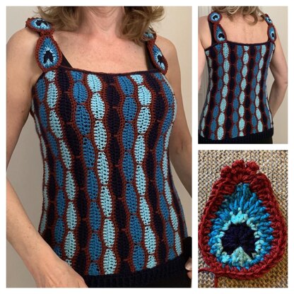 You can make this lovely crocheted Peacock top in many different rich and vibrant colors.