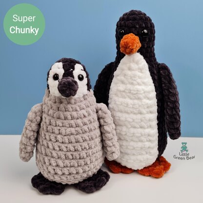 I’ve made Pru the penguin and her chick using a super chunky #6 weight yarn. This is ideal for a soft and huggable plush toy and is a quick make - you can make your penguin in a few hours. The penguins can also be made in a smaller weight yarn, with a smaller crochet hook. She is 9 inches tall and her chick is 7 inches tall (when made with recommended materials).