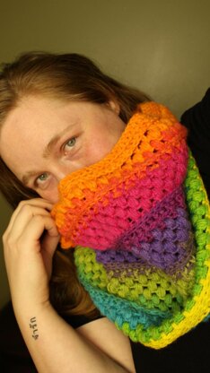 Lion Brand Mandala is a perfect lightweight yarn for a puff stitch cowl such as this! With easy repeats and gorgeous colour changes, this pattern is a very relaxing and rewarding project for any intermediate crocheter, or even a determined beginner!