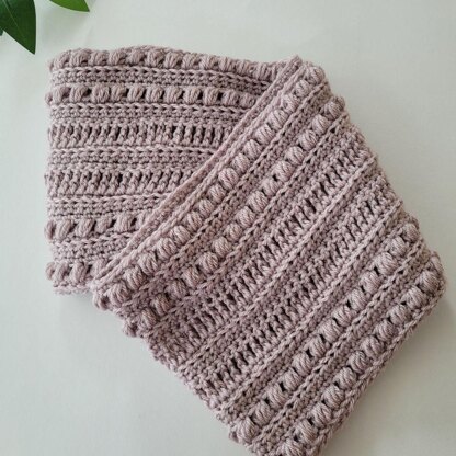 Keep a little warmer in fall or winter with this cute crochet scarf. PDF Pattern Includes - Written instructions - Photos Materials Needed: - Size 4 Yarn, (Exact Amounts, and brands provided, Approx. 550 yards) - Crochet Hook, Size 5.5 mm (I) - Scissors - Yarn Needle Stitches in pattern: - FHDC – Foundation Half Double Crochet - SC – Single crochet - SC BLO – Single Crochet Back Loop only - HDC – Half double Crochet - TR - Treble crochet - Puff stitch The pattern is written in English, using standard US terms. Sizes: Circumference is made to fit and approx. 8 to 9 inches tall. Level: Beginner/ Easy