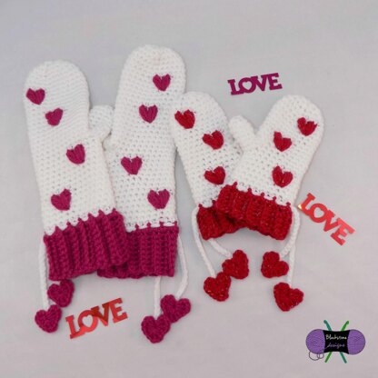 These mittens feature puffy hearts and cute heart tassels. They are just too cute for words!