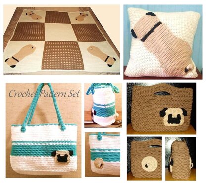 This pattern bundle contains the pattern for all PUG items: afghan, pillow, purse and tote. See specs below:
