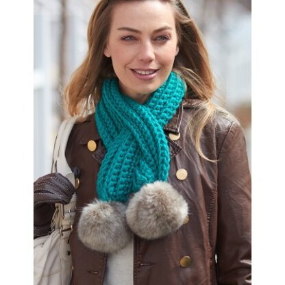Pull-Through Pompom Scarf in Bernat Softee Chunky and Faux Fur Pompom - Downloadable PDF