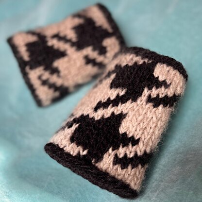 The wrist warmers are knitted in classic 2-color colorwork. This means you are using one DPN needle set and work simultaneously with two colors per round in stockinette stitch.
