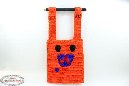 This cute crochet pattern is called the Cute Pumpkin Trick or Treat Bag that has 2 arms as the bag handles and the mouth as the bag opening for the candy to be added on Halloween by little children.
