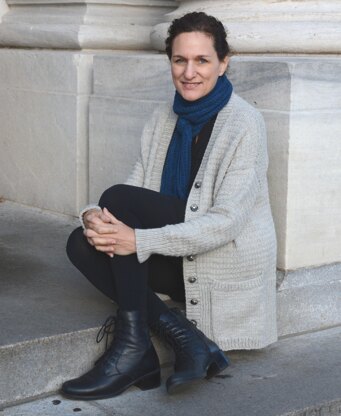 The Purl Ridges Cardigan is over-sized, comfy, and cozy for cold winter days. The simple texture stitch is contrasted by deep stockinette stitch pockets. This is a cardigan to live in. Wear it with a favorite pair of jeans, or with dresses, tights and boots. Wear it all day and into the evening. You might even be tempted to wear it with your PJs too.