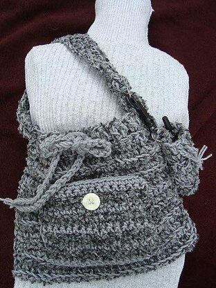 The stitching on this bag is dense enough that it does not need a lining! This design as been worked up using Red Heart Yarn, and combining a solid color, and a nubby textured yarn.