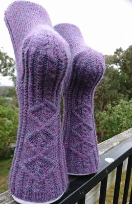 Socks so called because the cable and texture pattern is reminiscent of the Diamond python snake, a common and nonvenomous visitor to backyards on the city fringe.
