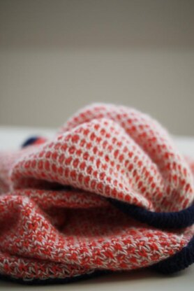 After just a few rounds, you will have memorized the two-color brioche pattern, especially after you watch the explanatory videos linked in the description. The entire shawl is knit in the round, one color at a time. After steeking, you will knit on the facing, there are a few tips and tricks mentioned in the pattern.