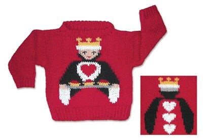 Easy to follow full color stitch charts are provided for back and front of sweater, and there are instructions for changing yarn colors for the intarsia design.