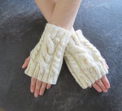 These fingerless gloves are a fun knit for yourself, or a quick gift for someone else. Clear instructions make this a great project for someone new to cables - they were test-knitted and approved by people who had never done cables before and were able to do these successfully without frustration.