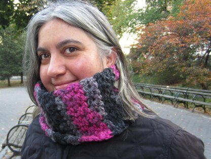 A simple stitch pattern combines with bulky yarn to make a unisex cowl that works up quickly enough to protect against a sudden cold spell or to serve as a last minute gift.