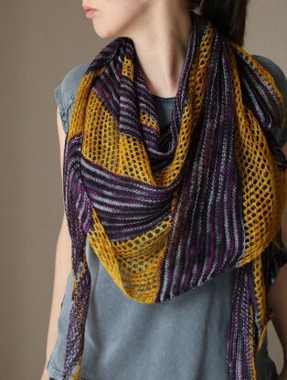 Quicksilver is worked flat from tip to edge, with garter stitch stripes and a lace mesh that knits up in the blink of an eye.