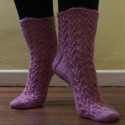 The sock pattern includes both charts and written instructions for the lace. Instructions for construction, including the slip-stitch heel are written.
