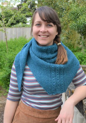 Quilo is a warm triangle shawl with a mock cable panel at the centre and garter stitch sides. Using 4 mm/ US 6 needles creates a dense yet stretchy fabric that will keep you very warm during cold winter days. Increases are made at the outside and along the centre panel. As a result, there is no tip at the bottom of the triangle, making this an unusual triangle shawl. The simple design make this a shawl that can be paired with nearly everything.