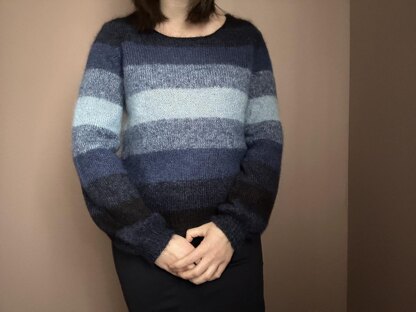 This sweater is recommended to be worn with 5-10 cm / 2-4” of ease at the bust. To determine the size to knit, take your chest measurement to which you add the recommended ease.