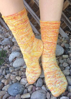 Remember when you were little and would draw a sun in the corner of your drawings? A quarter circle with lines to show the sunbeams? The lace pattern creates the curve of the sun and radiating slipped stitch sunbeams.