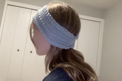 I made this pattern on holiday in North Carolina, where I have a young cousin who loves trains. Hence, I thought up the name Railroad Headband, though I almost named the pattern Pebbled Stream Headband