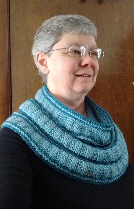 Starting at the lower edge with garter rib, the cowl transitions to stockinette and then alternates between the two. Decreases are made in the stockinette sections so the cowl will sit closer to the neck at the top for a comfortable fit. This is an easy knit and purl design which uses small amounts of contrast color - a great way to use up your leftovers. Think of the variations you can make!