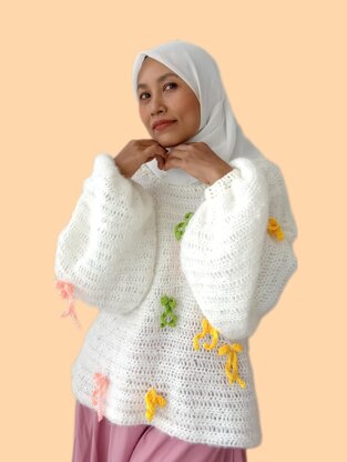We used in total approximately of 700 yards DK size yarn for 86cm bust circumference.