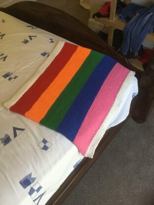 I first made this baby blanket for a friend who was pregnant after many miscarriages, and it proved the perfect gift, the bright colours can be switched up to suit your desires, or if you are after more of a challenge then you could add more colours to make a longer blanket.