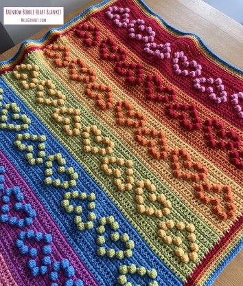 Rainbow Bobble Heart Blanket pattern by Melu Crochet