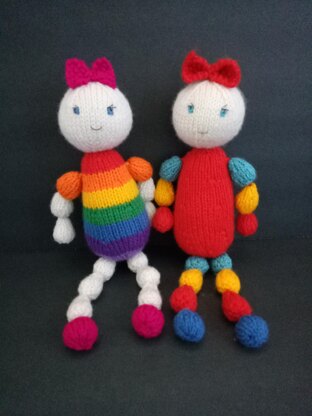 May B Lou is my tribute to the original dolls which came with red or blue bodies (shown in red). Examples have also been found with pale pink or pale mint coloured bodies. The modern version has a pink body.