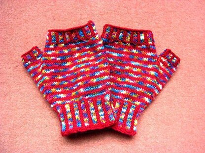 Easy-to-knit leftover sock yarn mitts. Use one plain colour and one self-striping/multicoloured yarn and get your unique rainbow mitts!