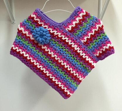 Crochet Pattern for Rainbow Poncho with Flower - shawl, or cape.