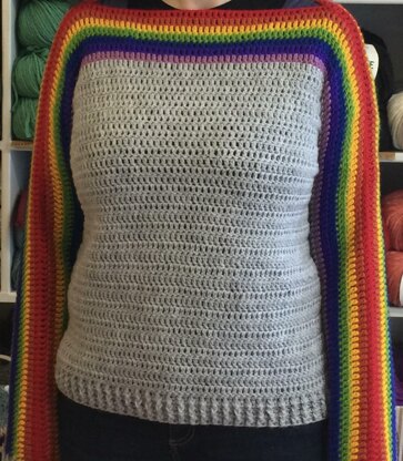 The rainbow sleeve jumper is worked top down. The front of yoke and sleeve is worked first, then the back of yoke and sleeves, then body is worked in the round. It is an easy make. Perfect for a rainy day, when looking forward to a bit of sunshine