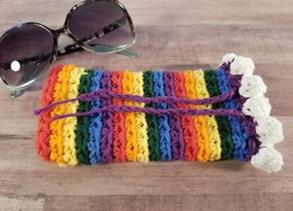 The Rainbow Sunglasses Pouch pattern is so fun! It works up quickly and easily and the little cloud detail at the top is completely adorable.