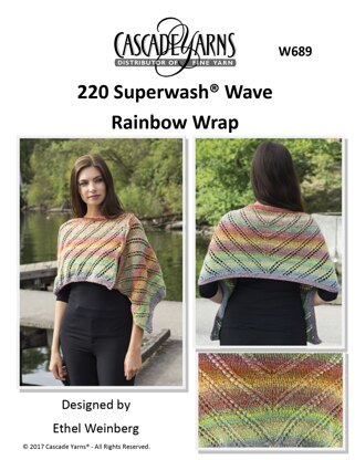 Rainbow Wrap in Cascade 220 Superwash Wave - W689 - Downloadable PDF est un modèle de Tricot Intermédiaire gratuit par Ethel Weinberg, disponible au format PDF téléchargeable et comprend des instructions en Anglais. Super amusant à réaliser, ce modèle pourrait être votre prochaine œuvre d'art !
