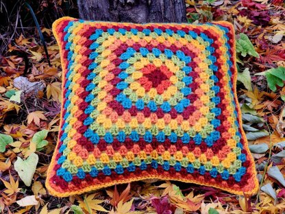 - Here it is my adorable Rainy Days Granny Cushion, among golden leaves and damp earth, shinning bright with its vivid color palette, meant to bring warmth and good vibes into your home.