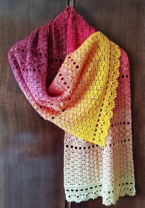 I wanted to make something quick, yet beautifully textured and elegant. She loves yellow and red shades so the yarn cake I had in my stash was perfect for it.