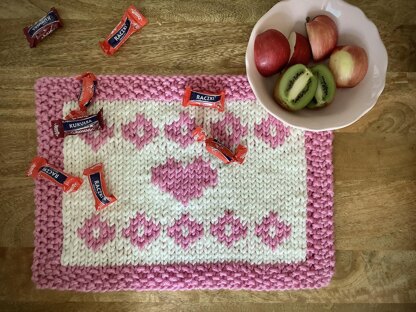 Raspberry Cream is a colour-block knitted placemat pattern, own design by Blue Balloon Atelier. Very satisfying and frugal pattern. It can be made rather quickly and it uses very little yarn, often scraps from much bigger projects. Of course if you make only one placemat.