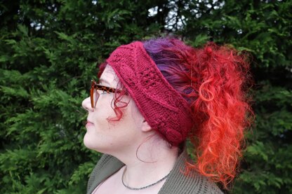 The vine is made with mock cables so no cable needle is required, it makes them really pop out from the pattern. The raspberries use simple raspberry stitch which makes it easier than bobbles and compliments the leaves so nicely! The size of the headband waves slightly as the leaves grow and shrink. The headband is knitted to the size of your head– that was 4 rounds for me (58cm head) and will probably be for you too.