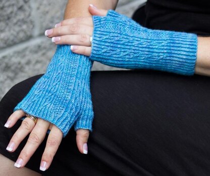 These slightly sassy fingerless mitts have a fun twisted rib design. The pattern is charted in 4 different sizes to fit just about everyone.