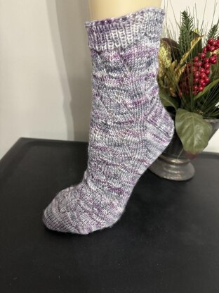 I absolutely fell in love with this yarn from Arcane Fibre Works and had to find just the right use for it. This flame chevron was perfect! It reminded me of a rocket launch when all the flames are shooting out. I love how quickly this stitch pattern works up and creates such wonderful movement in the sock. It’s also a great introduction to adding some lace work to your piece.