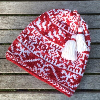 Nowhere in Russia is more iconic to me than Red Square in Moscow. I have never been but it seemed the perfect name for this hat in yummy Ravelry Red Malabrigo Rios worsted. Beginning with bright colors, a boxed braid, and ending up slouchy with long tassels, it will bring warmth on the coldest of winter days. Rios makes it soft and thick. The pattern, inspired by Russian Folk Motifs, make this stranded hat different from all others. Three sizes: Infant, Child & Adult. Copyright 2014 by Lisa McFetridge