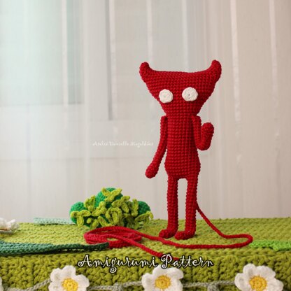 This is a digital crochet pattern to make an amigurumi inspired by the main character from the beloved indie game Unravel.