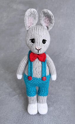 This is a knitting pattern for a stuffed toy rabbit called Reginald. The toy is knitted on 2 needles and then sewn.