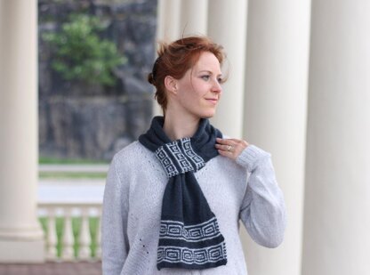 The perfect travel companion to the Relics Bonnet, this clever scarf is ready to fight the wind during your grand adventuring. A pull-though keyhole and built-in pleats make this charming scarf easy to wear gracefully. Cozy yarn and a fun contrast color have room to shine with the perfect simplicity of stockinette stitch and smartly placed patterning.