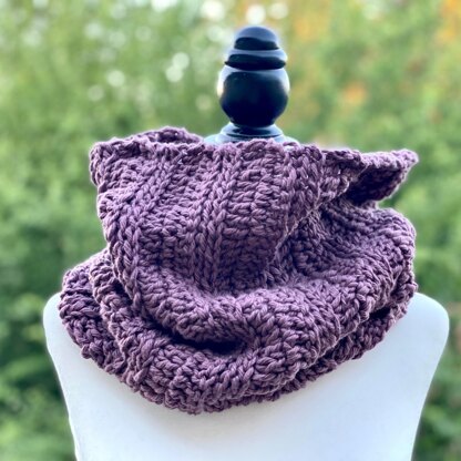 The Remi Cowl is a thick and chunky cowl perfect for the cooler months. The pattern uses variations of basic stitches to create the knit-look design.