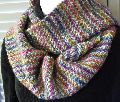 Finish the mobius or infinity loop with a Kitchener stitch, a three-needle bind-off, or a a seam The pattern includes directions for the various options, as well as for interchanging yarns with a different gauge, and carrying the yarn not in use up the side.