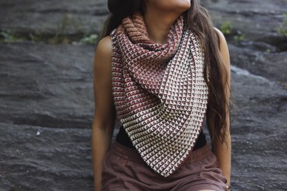 The multi-textural Resonance Wrap is a two-way fade triangle scarf with brilliant color combining opportunities. Fading from light to dark in opposing directions coupled with a unique pebbled texture makes for a mesmerizing fabric that will catch everyone’s eye.